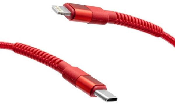 MobilNET Adat- és töltőkábel fonott USB-C/Lightning, 3A, 20W, 2m, pirosNULL...
