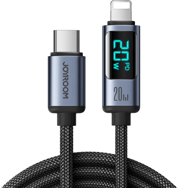 Joyroom Prism sorozat A16 Lightning/USB-C PD 20W 1.2m kábel, fekete Joyroom Prism sorozat A16 LED kijelző kábel Lightning / USB-C 20W 1.2m hosszúsággal - Fekete Több időre van szükséged a szeretett dolgaidra? Csökkentse iPhone-jának töltési idejét és induljon kalandokba! A Joyroom Prism Series A16 kábel jelentősen felgyorsítja a töltési folyamatot, így nem vesztegeted az időt