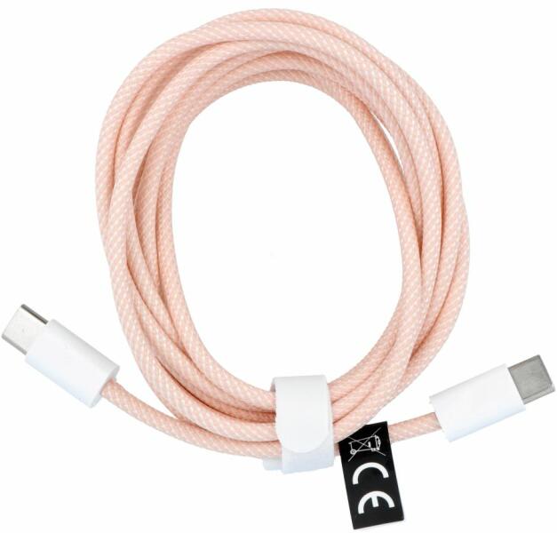 Univerzális - Type-C (USB-C) / Type-C (USB-C) pink szövet kábel 2m, 60W. Gyorstöltési funkció 60W-ig - támogatja a Power Delivery 60W-ot, a Quick Charge 3.0-t és más protokollokat, amelyek lerövidítik az eszközök töltési idejét (gyorstöltési funkcióval rendelkező töltő szükséges), és lehetővé teszi az adatátvitelt. Sokoldalúság - 2 m-es kábel A Type-C (USB-C) csatlak