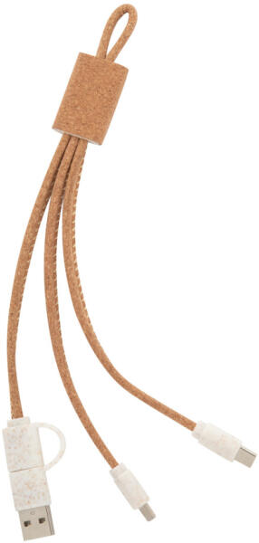 Természetes parafa és ökológiai búzaszalma műanyag töltőkábel mikro USB, USB-C és Lightning csatlakozókkal. USB és USB-C bemenettel.