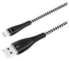 USB Type-C töltőkábel, 2 m hosszú, fekete színű szövet borítással. Töltés közben egy beépített, három színű LED-jelző világít a kábel fején. Töltésre és adatátvitelre egyaránt használható.