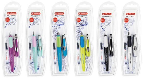 Herlitz my. pen jobbkezes vegyes színű töltőtoll my. pen töltőtoll, műanyag testtel, ergonomikus gumis fogórésszel, formatervezett fém csíptetővel, egyedülálló tintatovábbítási rendszerrel, jobbkezes, többféle színben, M-es hegyvastagsággal, bliszteres kiszerelésben.