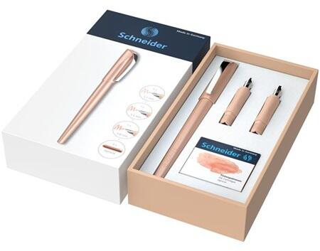 A Schneider Callissima töltőtolla a lapos és egyenes tollhegynek köszönhetően tökéletes a kalligrafikus íráshoz. - a készlet tartalma: egy töltőtoll 1,1 mm-es tollheggyel, egy 1,5 mm-es és egy 1,8-mm-es tollhegy, ill. 6 db hagyományos tintapatron - elegáns, metálfényű külsővel rendelkezik - erős fémklip - barack színű tinta - a vékony tolltest és az ergonomikus kialakít