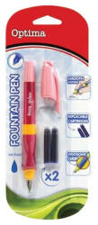 Műanyag testű töltőtoll, gumifogós, 2 db patronnal csomagolva.