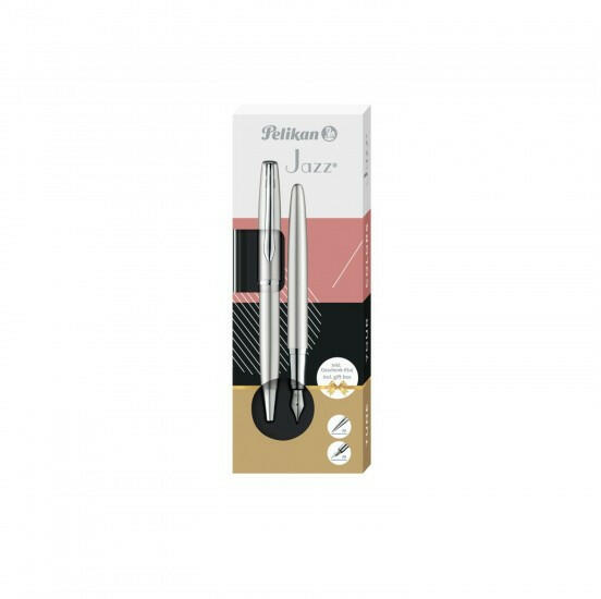 Ajándékdobozos Jazz Noble Elegance fém golyóstoll + töltőtoll készlet. Kiegyensúlyozott vonalaikkal és igényes felületkezelésükkel kitűnnek a többi toll közül. Kellemes fogásukkal és pelikáncsőrre emlékeztető rugós klipjükkel a mindennapi élet megbízható partnerei. A golyóstoll írásszíne kék, M-es hegyvastagsággal, nagytartályos golyóstollbetéttel utántölthet