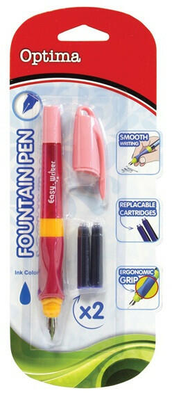 Töltőtoll OPTIMA Műanyag testű töltőtoll, gumifogós, 2 db patronnal csomagolva.