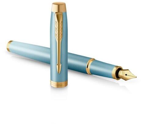 A Parker IM Writing Rituals Green GT töltőtoll teste és kupakja szatén metál színű lakkal van bevonva. a töltőtoll rozsdamentes acél hegye dekoratív gravírozással és tartós arany színű bevonattal van ellátva PVD technikával illeszkedő sapka kétcsatornás tintaellátó rendszer a hegyhez a tintapatronok használatának és az átalakítóból történő feltöltésének lehető