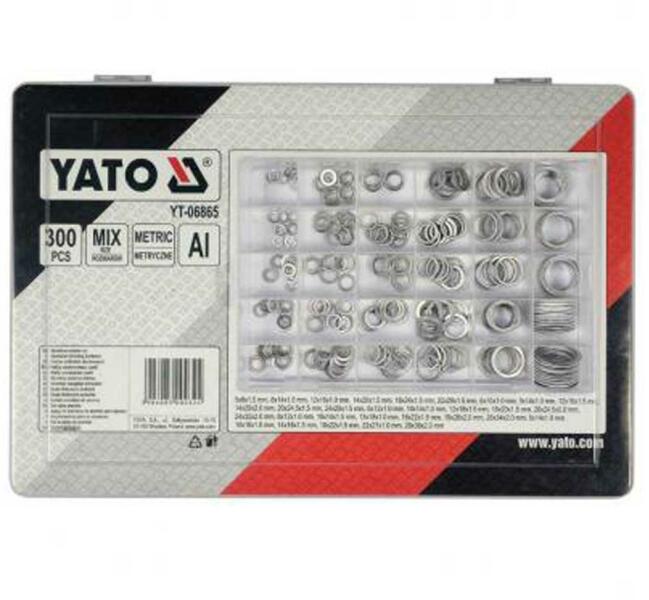 Yato tömítõ alátét készlet, 300db-os, szortírozó dobozban Darabszám: 300db Méret: 5x9x1.0 mm -tõl 28x36x2.0 mm EAN: 5906083000324