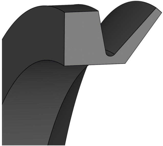 A V-gyűrűk axiális tömítések, amelyek ajaktömítésként, de szórógyűrűként is szolgálnak. Por, kosz, zsír, olaj és freccsenő víz elleni külső tömítésként használják őket. A merevítő test, a csukló és a tömítő ajak képezik a V-gyűrű tipikus szerkezetét. A VA kivitel egy standard V-gyűrű. Képünk illusztráció. Alkalmazási terület hajtástechnika, berendez
