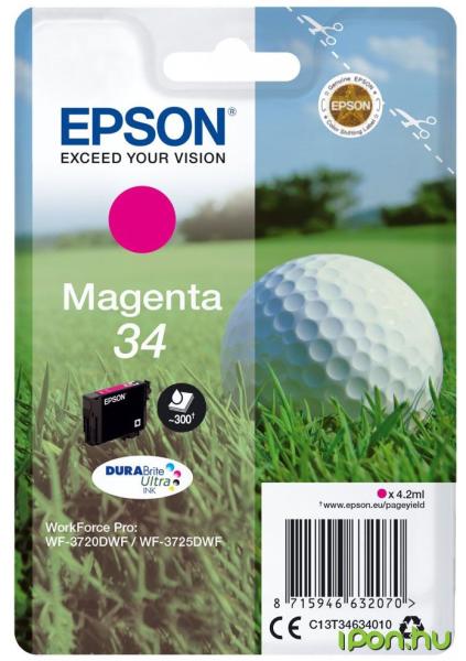 Epson T34634010, T346340 bíborvörös (magenta) eredeti tintapatron, Eredeti cartridge Epson nyomtatóhoz. Nagyszerű választás üzleti dokumentumok, számlák, táblázatok, grafikonok vagy képek mindennapos nyomtatásához. Miért vásárolja meg a mi eredeti tintapatronunkat? Eredeti cartridge = garancia közvetlenül a nyomtató gyártójától · 100 %-os használat a nyomtatóban– megb