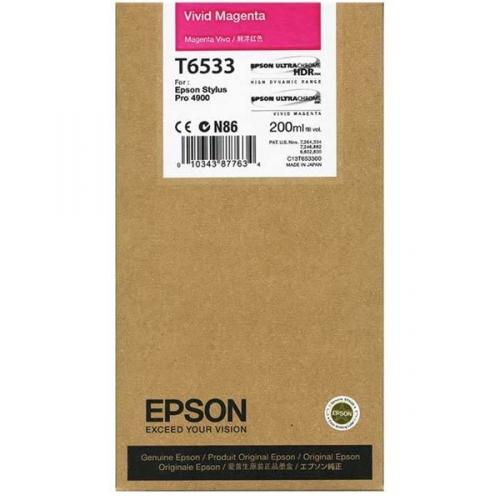 Eredeti Epson T6533 (C13T653300) festékkazetta (inkoust) . Szín: Magenta . Kapacitás: 200ml . Erre a festékkazettára nyújtott garancia: 24 hónap. A Epson T6533 (C13T653300) festékkazetta vásárlásával 3527 hűségpontra tesz szert, amit a következő vásárlásnál kedvezményre válthat. Ennek a festékkazettának a megvásárlásánál bármilyen kiszállítás INGYENES!Nem biztos be