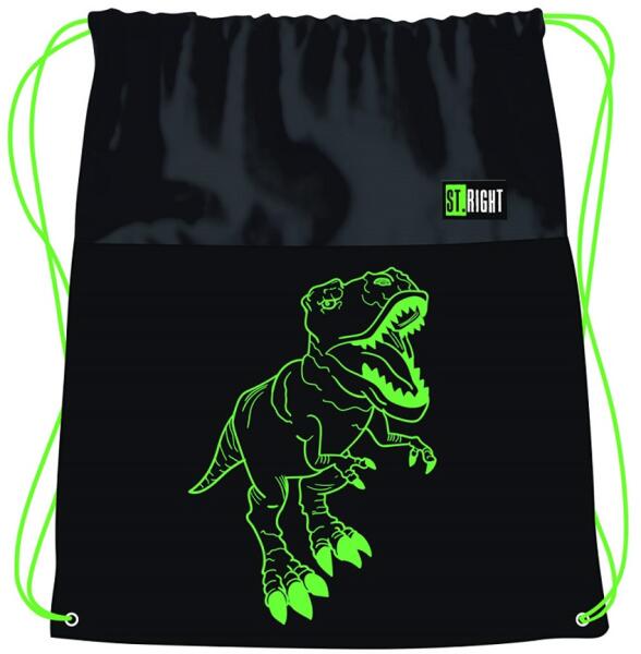 St. Right T-Rex dinoszaurusz mintás tornazsák, sportzsák 43x32cm Hivatalos magyarországi forgalmazótól. Leírás: A St. Right t-rex tornazsák feltűnő megjelenésű és praktikus kiegészítő minden dinoszaurusz-rajongó számára. A fekete alapon elhelyezett neon zöld T-rex minta azonnal felkelti a figyelmet és egyedi stílust kölcsönöz a tornazsáknak. Az T-rex tornazsák kényelme