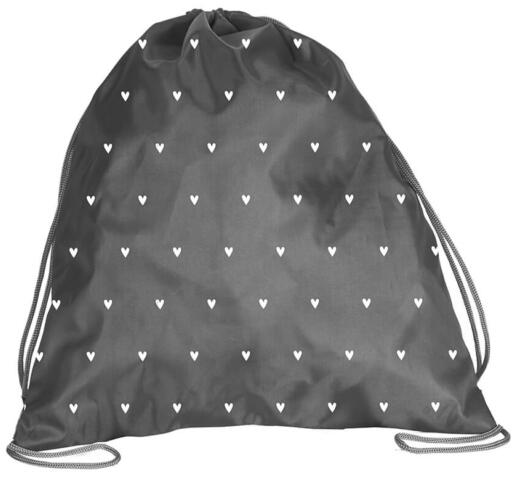 A BeUniq Szivecskés tornazsák - szürke (BU24HT-714) cuki, szivecskés mintával díszített, a kisiskolások kedvence lesz! A tornazsák teteje madzaggal szűkíthető. Tornaórára, kirándulásokra vagy akár a hétköznapokra is tökéletes választás.