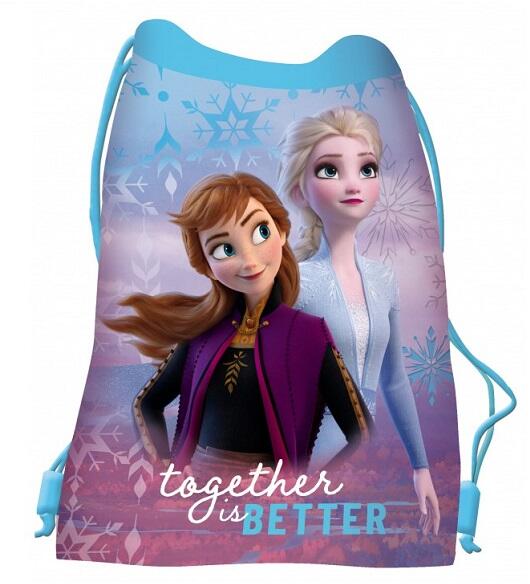 Jégvarázs tornazsák - Violet Frozen tornazsák Jégvarázs tornazsák világoskék és lila színátmenetes. A népszerű Disney mese, a Jégvarázs szereplői, Elsa és Anna láthatk rajta. A tornazsák alkalmas a tornafelszerelés, vagy a tornacipő tárolására, szállítására. A kék zsinórjának összehúzásával záródik. Mosható, könnyen száradó anyagból készült. Jégvarázs