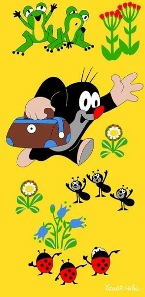 A népszerű és kortalan Kis vakond, amely generációk óta népszerű, hűséges társ lesz úszás közben is. Minőségi 100% pamutból készült, súlya 420 g / m2. A nyomtatás egyoldalas. Méret: 75/150 cm