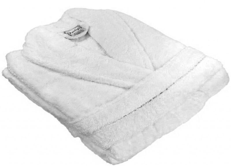 A frottír fürdőköpeny Deluxe fehér 100% pamutból készült, frottír kivitelben. Ennek köszönhetően a fürdőköpeny kellemes tapintású és nagyon meleg . Az anyag nagy grammsúllyal rendelkezik, 400 g/m2 tömegű, ami hosszú élettartamot biztosít. A fürdőköpeny hagyományos szabású, két zsebbel és övvel. A fürdőköpeny különösen alkalmas wellness létesítményekbe és