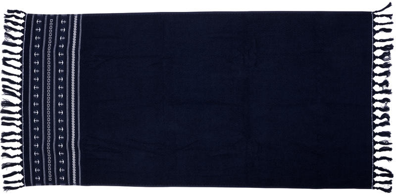 Technikai adatok: MÉRETE: 180 × 100 cm ANYAGA: argyle frottír CSOMAGOLÁS: kartondoboz TERMÉKLEÍRÁS: Nagy, rojtos végű, tengerparti törülköző, tengeri kivitelben. Kiváló minőségű argyle frottír anyagból készül. Ajánljuk Tökéletes hajó fedélzeti törülközőként, fürdőlepedőnek.