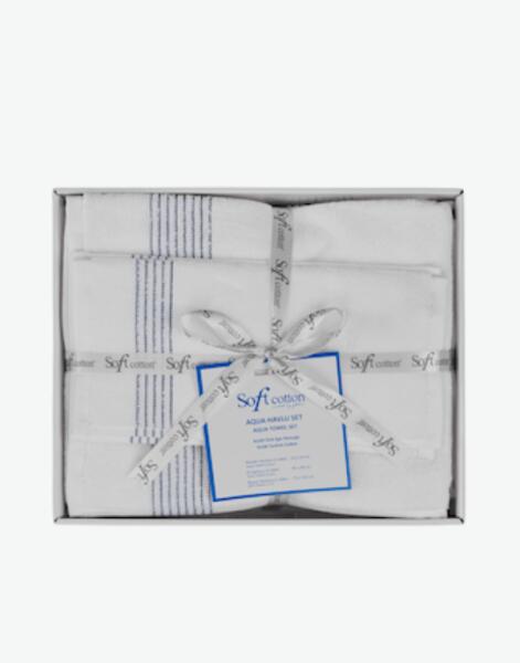 AQUA törölközők és fürdőlepedők ajándékszettje, 5 db A 100%-os pamutból gyártott, 450 g/m2 súlyú törölközők és fürdőlepedők antibakteriális védelemmel rendelkeznek. A törölközőknek puha a tapintásuk és kellemesen kényeztetnek mindennapi fürdés után. Az ajándékszett egy 2 db kis (33 x 33 cm), egy 2db klasszikus (45 x 90 cm) és egy fürdőlepedőt (75 x 150 cm) t