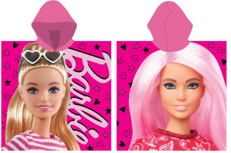 Barbie poncsó gyerekeknek. Tökéletes választás a strandra. Anyaga: 100% pamut. Méret: 55 cm x 110 cm