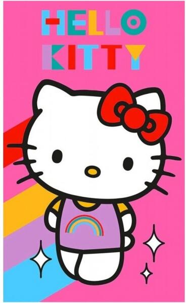 Gyermek törölköző Hello Kitty motívummal. A törülköző mérete 30x50 cm. A törülköző színes oldala finoman vágott frottírszövetből készül, a hátoldal fehér színű, sűrűn szőtt frottírhurokból készül. A törülköző kellemes frottír anyagból készül, jó nedvszívó képességgel, nagyon kellemes tapintású. Használható otthon és iskolában vagy óvodában is. G