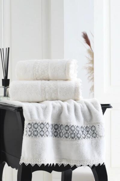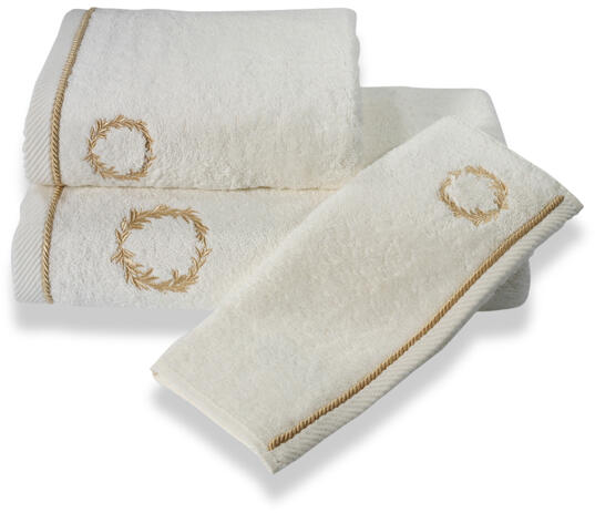 SEHZADE luxus frottír fürdőlepedő A SEHZADE férfi fürdőlepedő dísíteni fogja a fürdőszobáját. Vonzó a dizájnja, jó nedvszívó képességgel rendelkezik, különleges hímzés díszíti ez éppen az, amit eddig kereset. A teljes SEHZADE kollekciót a férfi fürdőköpeny, fürdőszobai kilépő és papucs képezi. Két változatban kapható: vajszínű arany hímzéssel vagy feh