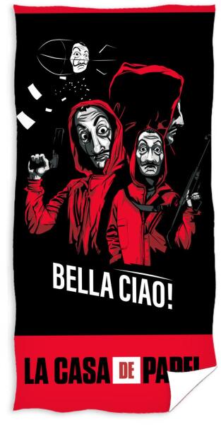 Törölköző - La casa de Papel - Bella Ciao Ajándékozz egy sorozatkedvelőnek egy eredeti törölközőt a Netflix La Casa de Papel sorozat leghíresebb szereplőinek nevével. Boldoggá fog tenni a fürdőszobában, de a strandon vagy a medence mellett is. Mennyiség: 1 db Anyag: 100% Pamut Méret : 70 x 140 cm