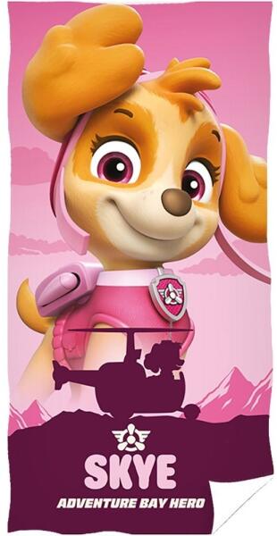 Mancs őrjárat baba törölköző Skye pilóta motívummal rózsaszínben. A törölköző kellemes frottír anyagból készült, jó nedvszívó képességgel. Méret: 70x140 cm Anyaga: 100% pamut Mosás: 30°C.