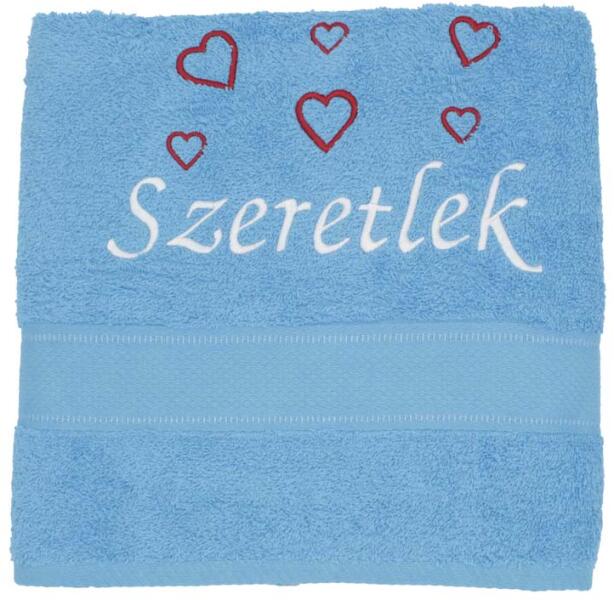 Törölköző hímzett - Szeretlek, szívek - türkiz Termékjellemzők: Anyaga: textil Alkalom: Bármilyen Kinek ajánlott: Bárkinek