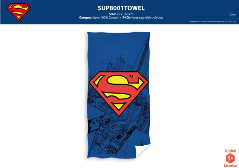 Superman strandtörölköző gyerekeknek 100% pamut alapanyagból. Tökéletes választás a strandra. A törölköző mérete: 70cm x 140 cm Anyagösszetétel: 100% pamut
