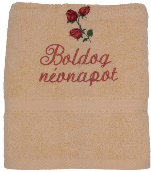 Törölköző hímzett - Boldog névnapot, rózsa - barack Termékjellemzők: Anyaga: textil Alkalom: Névnap Kinek ajánlott: Nőknek