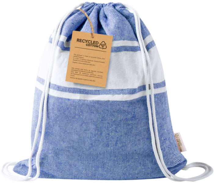 Kéttónusú pareo strandtörölköző újrahasznosított pamutból, hozzáillő színű zsinóros hordtáskával. 100% újrahasznosított pamut, 170 g/m2.