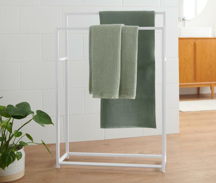kiváló minőségű 100% fésült pamut, elegáns megjelenés, jó nedvszívó képesség, csíkokkal díszített szegélly, praktikus akasztópánt.