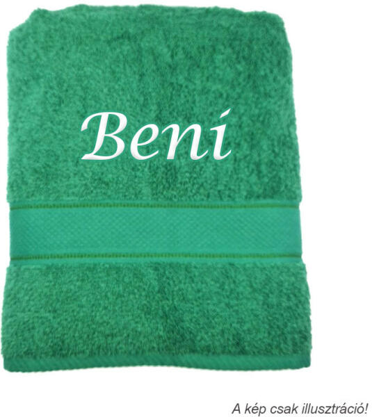 Hímzett, Beni neves törölköző . Tökéletes ajándék Beni nevű családtagnak, barátnak szinte bármely jeles eseményre. A törölköző színét a legördülő listából tudja kiválasztani. A megadott ár 1 db hímzett törölközőre vonatkozik. A hímzett törölköző mérete kb. 70x140 cm (+/- 5%). Anyaga 100% pamut (380 g/nm +/- 5%). A hímzés magassága kb. 5-7 cm. FONTOS! A fén
