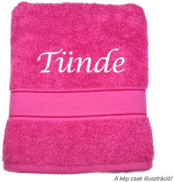 A törölköző színét a legördülő listából tudja kiválasztani. A megadott ár 1 db hímzett törölközőre vonatkozik. A hímzett törölköző mérete kb. 70x140 cm (+/- 5%). Anyaga 100% pamut (380 g/nm +/- 5%). A hímzés magassága kb. 5-7 cm. FONTOS! A fénykép illusztráció. A törölköző színe árnyalatbeli különbséget mutathat, a színeket az Ön monitor beállítás is be