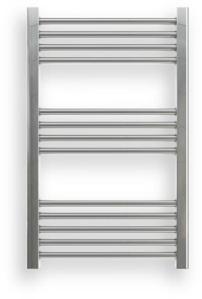 Ecoradco törölközőszárító radiátor 50 x 80 cm-es méretben, króm színben. Egyenes kivitel 3 szekcióra bontott csövekkel (4+4+5 arányban). A radiátor tartozéka a 3 db rögzítő konzol és a menetes dugók. Anyaga minőségi rozsdamentes acél, többszörös króm bevonattal, ami ellenáll a nedvességnek és folyamatos magas páratartalomnak, valamint esztétikus megjelenést, és h