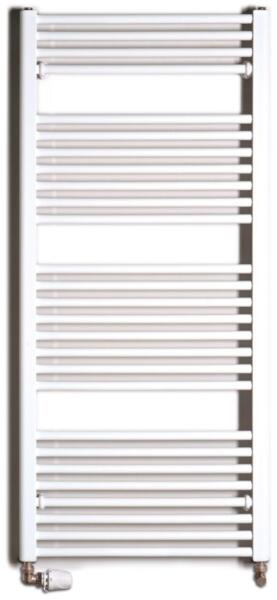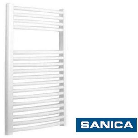 Fehér színű egyenes csőradiátor. A Sanica törölközőszárító radiátor egyszerre biztosítja a fürdőszoba ideális fűtését és a törölközők szárítását. A törölközőszárítók, amelyek minden helyiségben felszerelhetőek, nagy méretválasztékban elérhetőek. A standard fehér színű modell RAL 9010-es színben készül. A hengeres csövekből tervezett összes Sanica