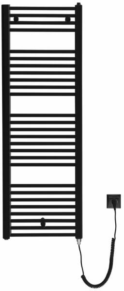 Egyenes radiátor|Szín: Fekete matt|Szélesség: 450 mm|Magasság: 1320 mm|Forma: H-forma|Fűtési lehetőség: Radiátorba integrált elektromos fűtés|Kivitel: Radiátor / elektromos ( fűtőpatront tartalmazza|Méret: 450x1320 mm|Alapanyag: Acél|Teljesítmény: 400 W