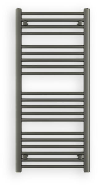 Törölközőszárító radiátor 50 x 110 cm-es méretben, gunmetal (grafitszürke) színben. Egyenes kivitel 4 szekcióra osztott csövekkel. A radiátor tartozéka a rögzítő konzolok és menetes dugók. A Nero Italia fürdőszobai radiátorok kimagasló gyártási minőségben előállított termékek, első osztályú acél felhasználásával készült, precizíós, nagy tartósságú és