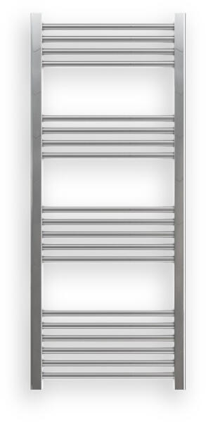 Nero Italia törölközőszárító radiátor 50 x 120 cm-es méretben, króm színben. Egyenes kivitel 3 szekcióra bontott csövekkel. A radiátor tartozéka a 3 db rögzítő konzol és a menetes dugók. Anyaga minőségi rozsdamentes acél, többszörös króm bevonattal, ami ellenáll a nedvességnek és folyamatos magas páratartalomnak, valamint esztétikus megjelenést, és hosszú, korró