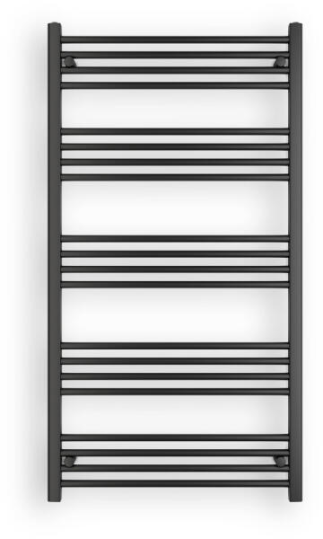 Törölközőszárító radiátor 75 x 140 cm-es méretben, fekete színben. Egyenes kivitel 5 szekcióra osztott csövekkel (5x4). A radiátor tartozéka a 3 db rögzítő konzol és a menetes dugók. A Nero Italia fürdőszobai radiátorok kimagasló gyártási minőségben előállított termékek, első osztályú acél felhasználásával készült, precizíós, nagy tartósságú és egyenle