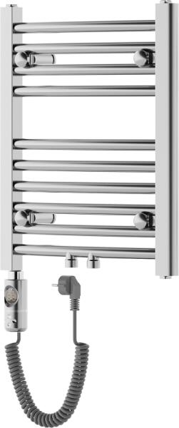 Műszaki adatok: Magasság: 500 mm Szélesség: 400 mm Mélység: 44 mm Szín: króm Anyaga: acél Fűtőteljesítmény: 300 W Fűtőrudak száma: 10 db Długość całkowita grzałki: 426 mm Fűtőelem hossza: 310 mm Tápkábel hossza: 1,5 m Üzemi feszültség: 230V/50 Hz Védettség: IP44 Sterowanie dotikowe za wysządka LED kijelző Dodatkove zabezpieczenie przed pracą on "dry" A beépített