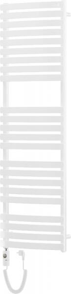 Műszaki adatok: Magasság: 1600 mm Szélesség: 500 mm Mélység: 88 mm Fehér szín Anyaga: acél Fűtőteljesítmény: 900 W Fűtőrudak száma: 23 db Długość całkowita grzałki: 866 mm Fűtőelem hossza: 750 mm Tápkábel hossza: 1,5 m Üzemi feszültség: 230V/50 Hz Védettség: IP44 Sterowanie dotikowe za wysządka LED kijelző Dodatkove zabezpieczenie przed pracą on "dry" A beépített