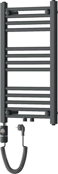 Műszaki adatok: Magasság: 700 mm Szélesség: 400 mm Mélység: 30 mm Szín: antracit Anyaga: acél Fűtőteljesítmény: 300 W Fűtőrudak száma: 13 Długość całkowita grzałki: 426 mm Fűtőelem hossza: 310 mm Tápkábel hossza: 1,5 m Üzemi feszültség: 230V/50 Hz Védettség: IP44 Sterowanie dotikowe za wysządka LED kijelző Dodatkove zabezpieczenie przed pracą on "dry" A beépített