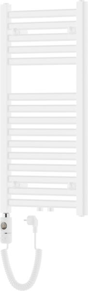 Műszaki adatok: Magasság: 800 mm Szélesség: 400 mm Mélység: 40 mm Fehér szín Anyaga: acél Fűtőteljesítmény: 300 W Fűtőrudak száma: 15 db Długość całkowita grzałki: 426 mm Fűtőelem hossza: 310 mm Tápkábel hossza: 1,5 m Üzemi feszültség: 230V/50 Hz Védettség: IP44 Sterowanie dotikowe za wysządka LED kijelző Dodatkove zabezpieczenie przed pracą on "dry" A beépített