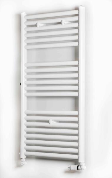 500 X 800 cm-es, 2 törölközőtartós 14 csöves fürdőszobai 426 W-os fehér ívelt csövű fali törölköző tartós radiátor fűtőtest - Olasz gyártású HEAT 500X800