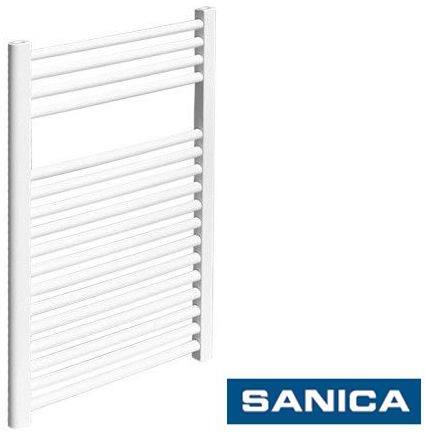 Fehér színű egyenes csőradiátor. A Sanica törölközőszárító radiátor egyszerre biztosítja a fürdőszoba ideális fűtését és a törölközők szárítását. A törölközőszárítók, amelyek minden helyiségben felszerelhetőek, nagy méretválasztékban elérhetőek. A standard fehér színű modell RAL 9010-es színben készül. A hengeres csövekből tervezett összes Sanica