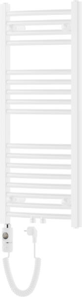 Műszaki adatok: Magasság: 900 mm Szélesség: 400 mm Mélység: 44 mm Fehér szín Anyaga: acél Fűtőteljesítmény: 300 W Fűtőrudak száma: 17 db Długość całkowita grzałki: 426 mm Fűtőelem hossza: 310 mm Tápkábel hossza: 1,5 m Üzemi feszültség: 230V/50 Hz Védettség: IP44 Sterowanie dotikowe za wysządka LED kijelző Dodatkove zabezpieczenie przed pracą on "dry" A beépített