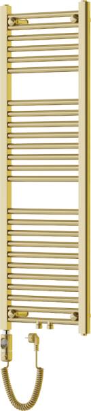 Műszaki adatok: Magasság: 1200 mm Szélesség: 400 mm Mélység: 30 mm Szín: arany Anyaga: acél Fűtőteljesítmény: 300 W Fűtőrudak száma: 25 db Długość całkowita grzałki: 426 mm Fűtőelem hossza: 310 mm Tápkábel hossza: 1,5 m Üzemi feszültség: 230V/50 Hz Védettség: IP44 Sterowanie dotikowe za wysządka LED kijelző Dodatkove zabezpieczenie przed pracą on "dry" A beépített