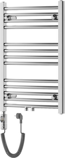 Műszaki adatok: Magasság: 700 mm Szélesség: 500 mm Mélység: 52 mm Szín: króm Anyaga: acél Fűtőteljesítmény: 300 W Fűtőrudak száma: 13 Długość całkowita grzałki: 426 mm Fűtőelem hossza: 310 mm Tápkábel hossza: 1,5 m Üzemi feszültség: 230V/50 Hz Védettség: IP44 Sterowanie dotikowe za wysządka LED kijelző Dodatkove zabezpieczenie przed pracą on "dry" A beépített ter