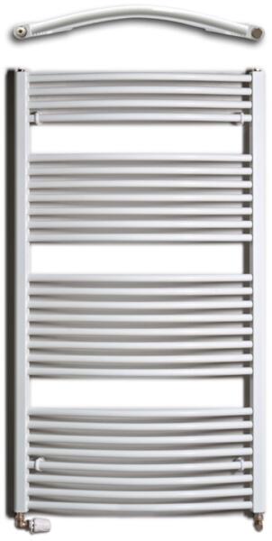 Radeco Sonia íves törülközőszárító radiátor 550x648 mm, fehérA2-500/SL Garancia: 5 év Anyag: acél Súly: 6,2 kg Szélesség: 550 mm Magasság: 648 mm Mélység: 120-140 mm Max. üzemi nyomás: 10 bar Max. üzemi hőmérséklete: 95 fok Kötési távolság: 500 mm Hőteljesítmény: 90/70/20 515W Íves kivitel Alsó csatlakozással, oldalsó bekötés Alapszín: fehér RAL 9016 Tartozé